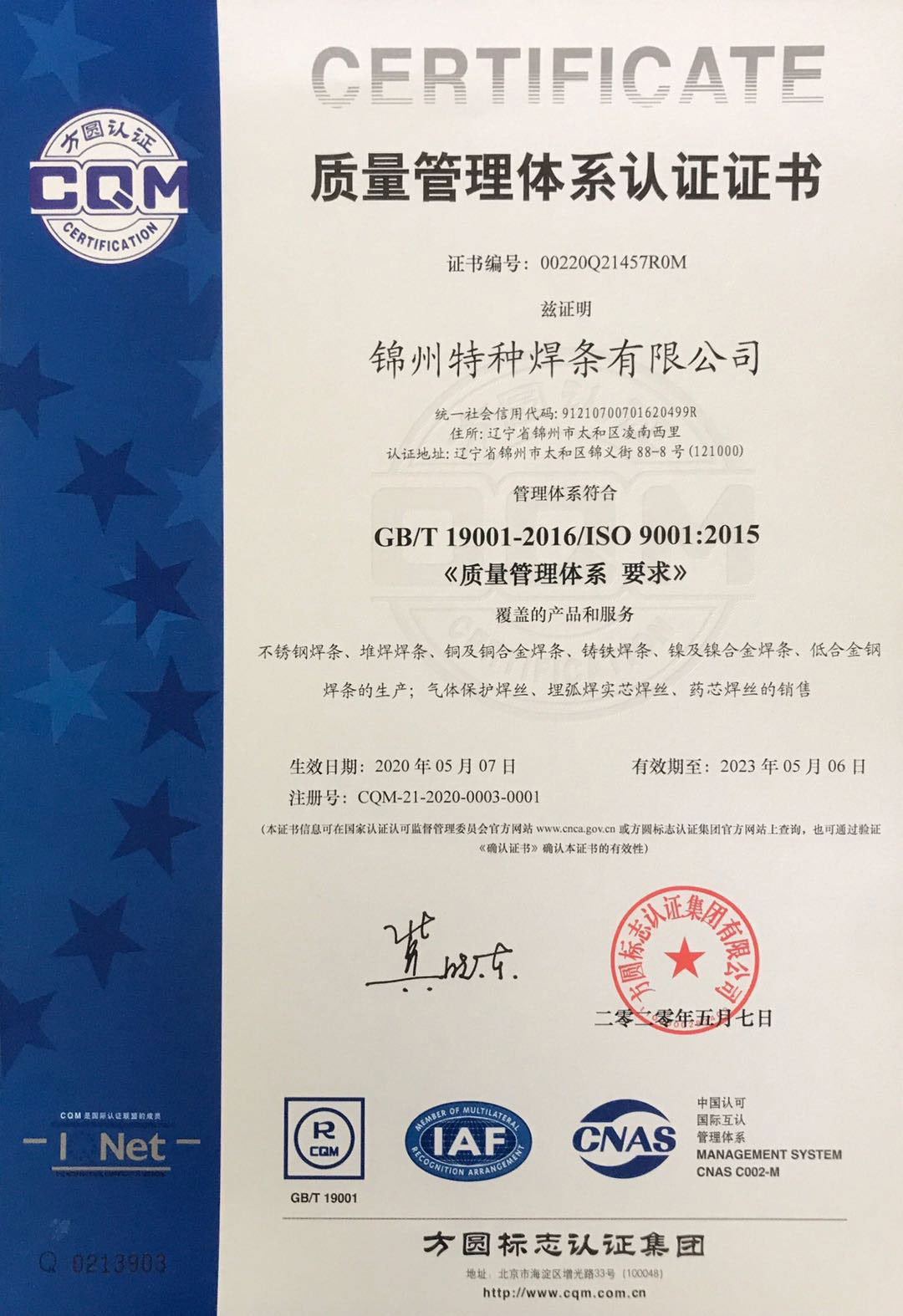 Certification Name:質(zhì)量管理體系認(rèn)證證書